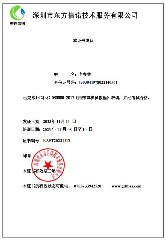售后服務師證書-李春林